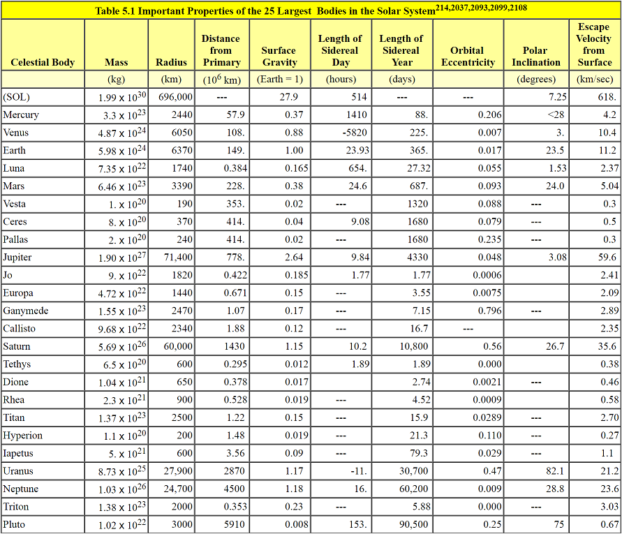 Stephen Dole has estimated that the largest mass of a body that can maintain a highly irregular shape is on the order of 10-5 to 10-4 Mearth.214 To get some idea of the degree to which an object may deviate from sphericity, Table 5.13 gives the largest size of a body whose mountains are as tall as the planetary radius itself (the long axis is twice the short). These worlds must be very small to retain their egg-shape.